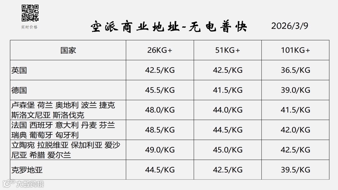 欧洲卡空派——无电普货