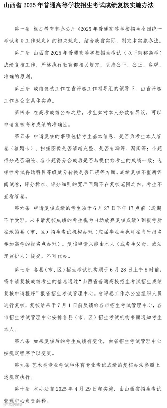 附件3:山西省2025年普通高等学校招生考试成绩复核实施办法