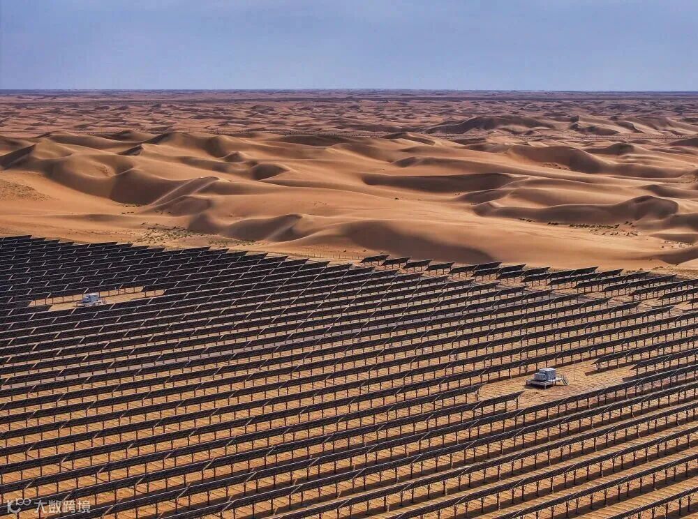 这是2025年6月5日拍摄的位于内蒙古巴彦淖尔市磴口县的乌兰布和东北部新能源基地100万千瓦光伏先导工程项目(无人机照片)。该项目地处乌兰布和沙漠。新华社记者 连振 摄