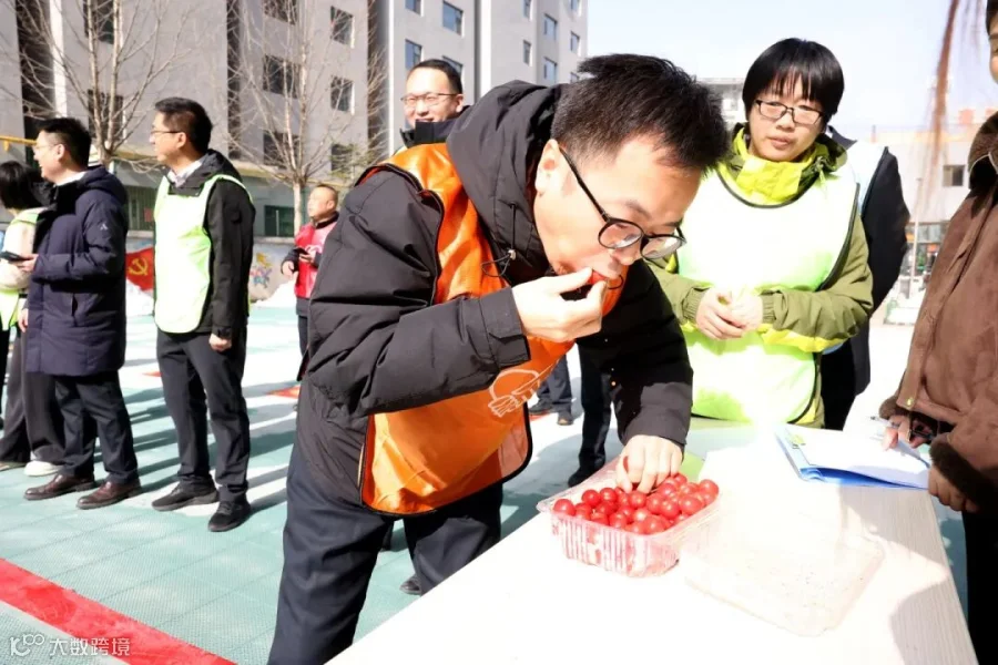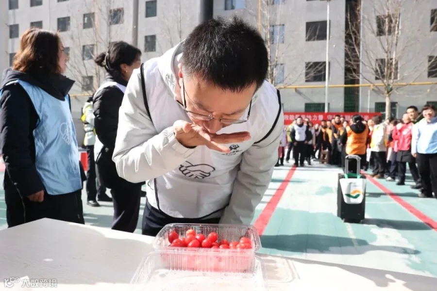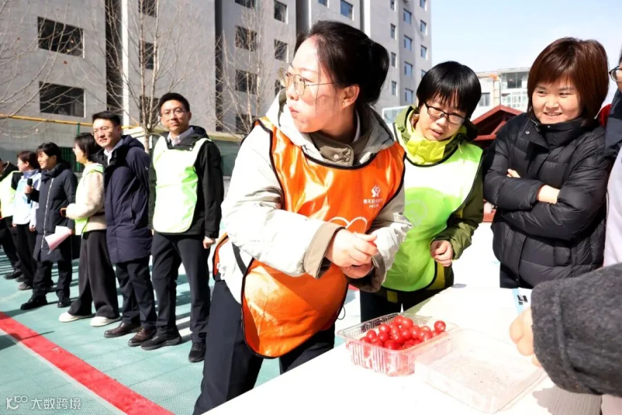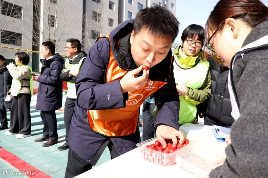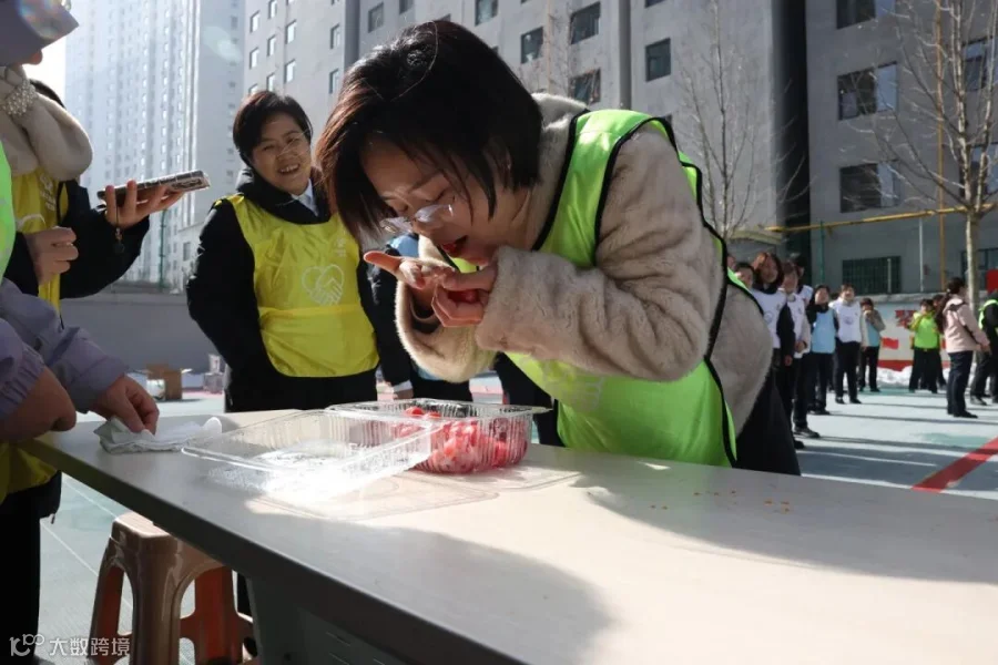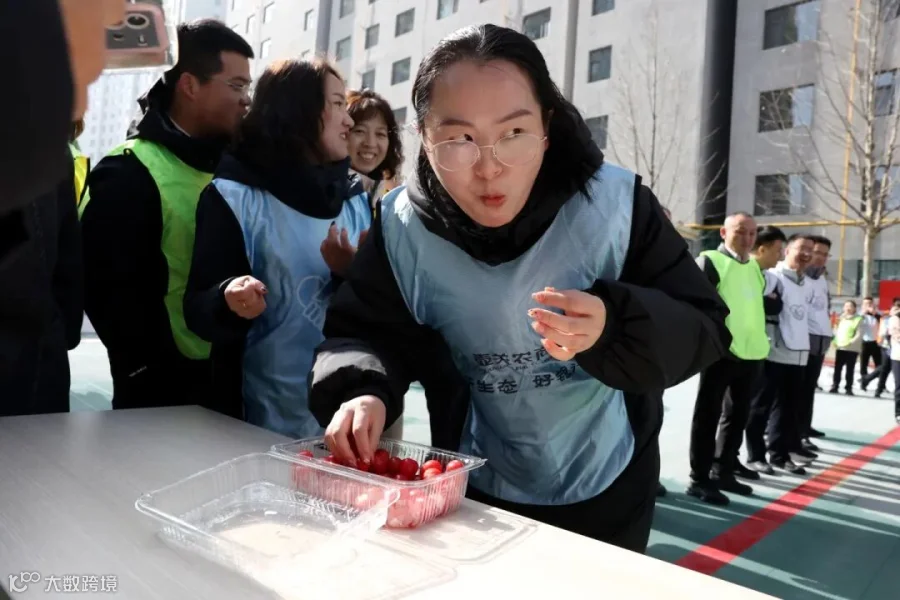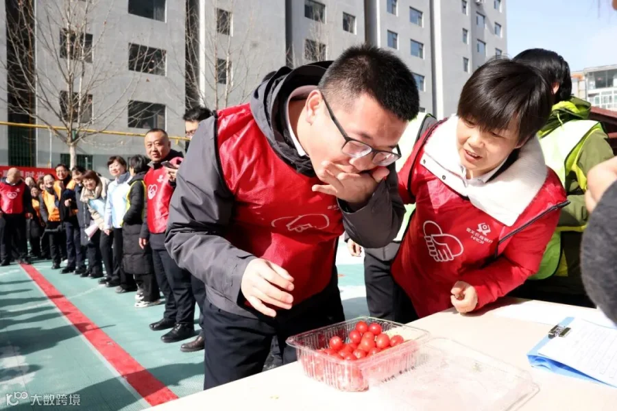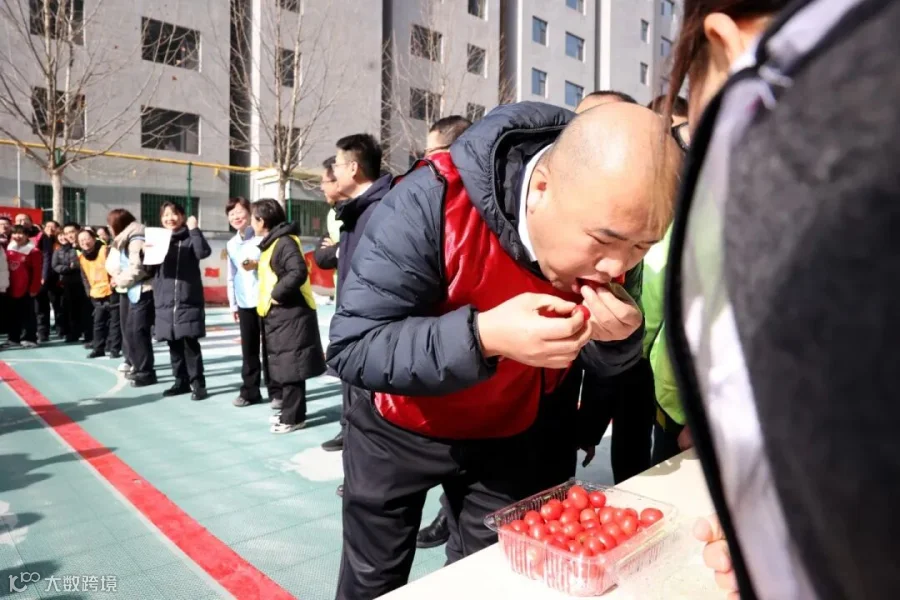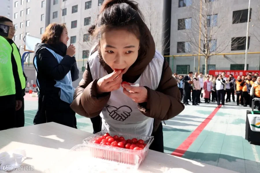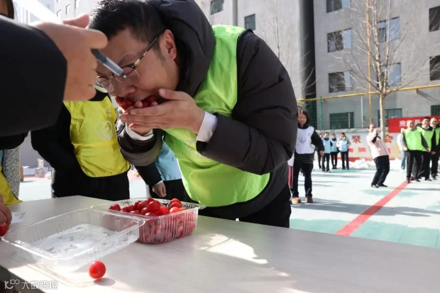 这个项目成了全场最“美味”的较量,每队男女轮流上阵猜拳,赢的人才能吃圣女果,输的人立刻换人,率先吃完的队伍获胜。“石头剪刀布!”的喊声此起彼伏,赢家得意扬扬地张嘴吞下红彤彤的圣女果,腮帮子鼓鼓囊囊,活像一只小仓鼠。场上猜拳声、加油声混成一片,气氛紧张又欢乐,终于有人再也吃不下,“噗”的一声果汁四溢,鲜红的汁液喷出,就像一位浴血奋战的勇士。