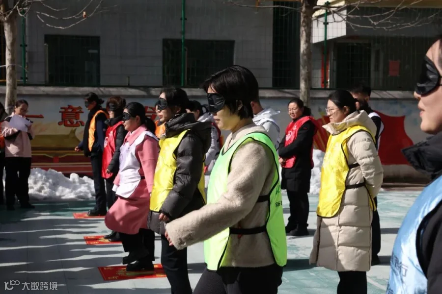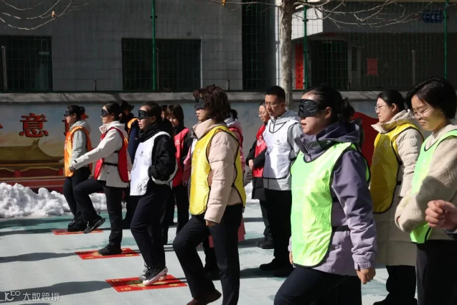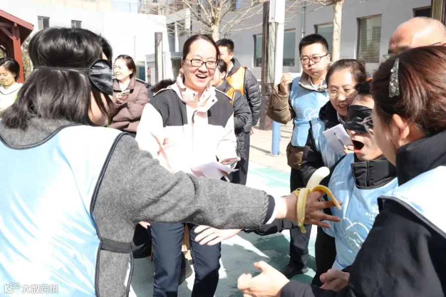 在女士专属的“蒙眼走猫步”环节,平日里干练专业的女员工们戴上眼罩,原地转完三圈后,瞬间失去了方向感。有人迈着小心翼翼的小碎步,沿着绳线像企鹅一样晃晃悠悠前行;有人则大胆迈步,却走成了“S”形,引得围观同事捧腹大笑。