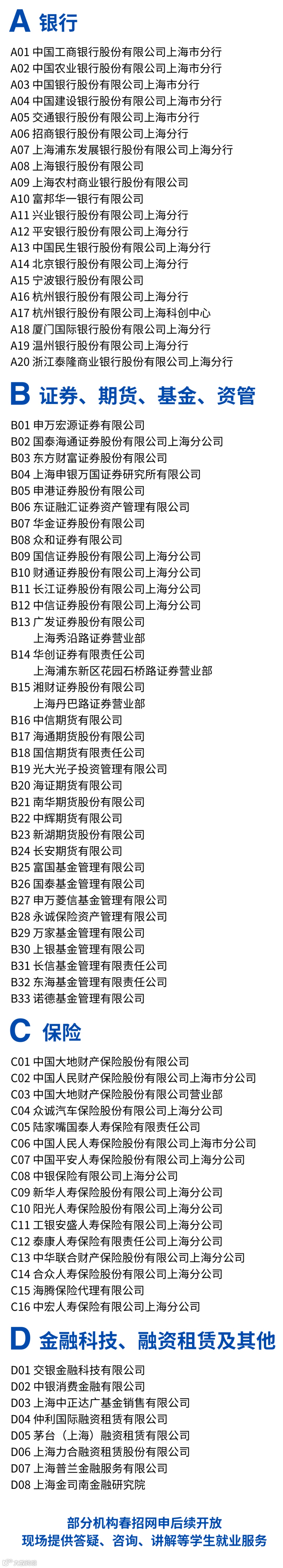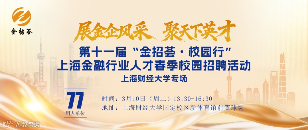 “金招荟”由中共上海市委金融委员会办公室、中共上海市金融工作委员会、上海市人力资源和社会保障局、上海市教育委员会指导,上海市金融稳定发展研究中心联合上海市人力资源公共服务中心、上海市学生事务中心主办,旨在汇集政府、金融机构、高校等力量,以“展金企风采,聚天下英才”为活动理念,搭建优质金融机构风采展示和金融人才供需精准对接的公益性平台,积极集聚优秀应届大学毕业生投身上海国际金融中心建设,助推青年学子成才,助力上海金融发展,共创中国金融美好未来。