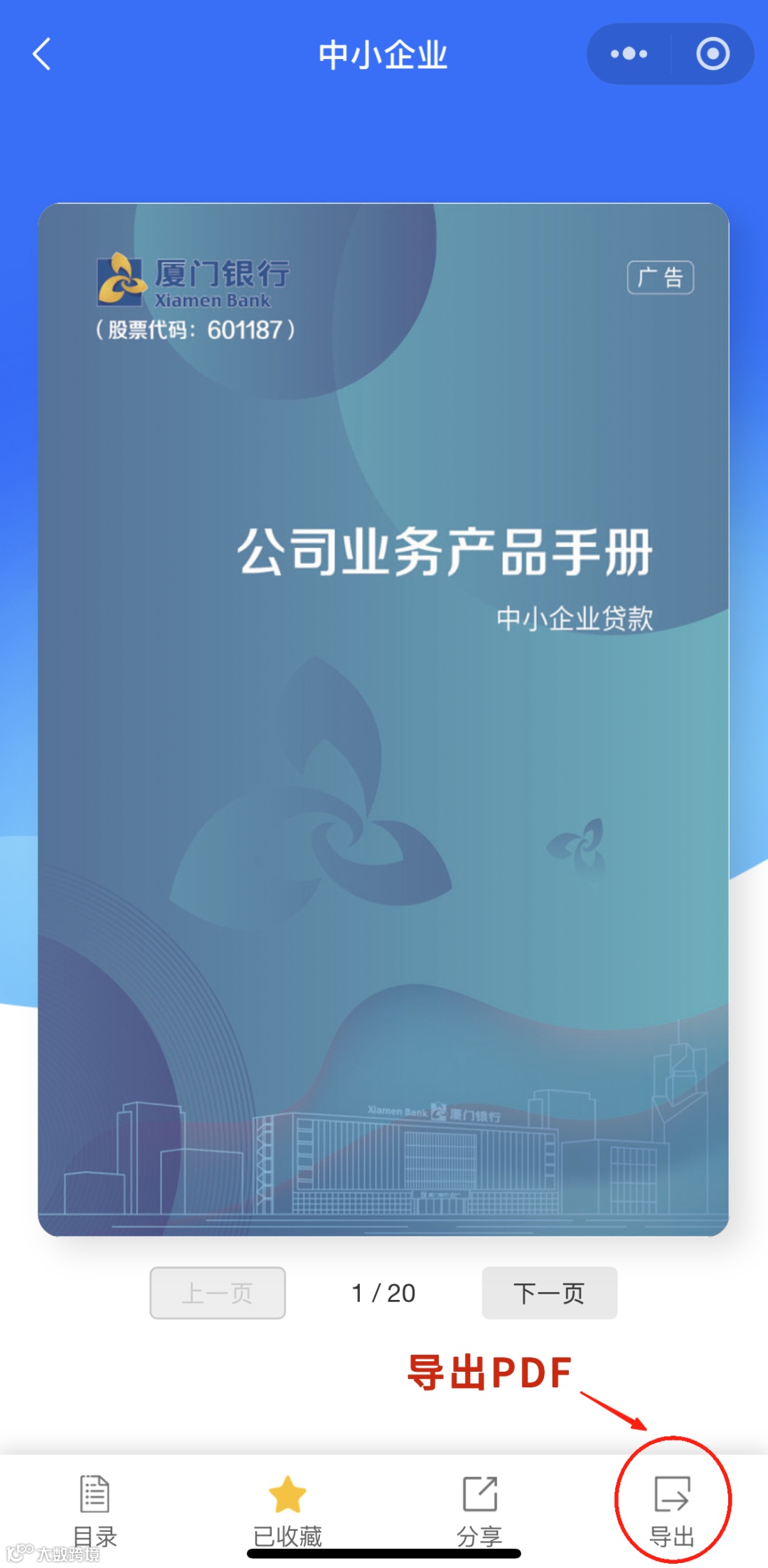 厦门银行聚焦中小企业、贸易融资、现金管理等核心场景,为您匹配解决方案,可支持在线浏览,导出PDF文件随心所欲,新增的收藏功能,让专业方案触手可及,随需随看。