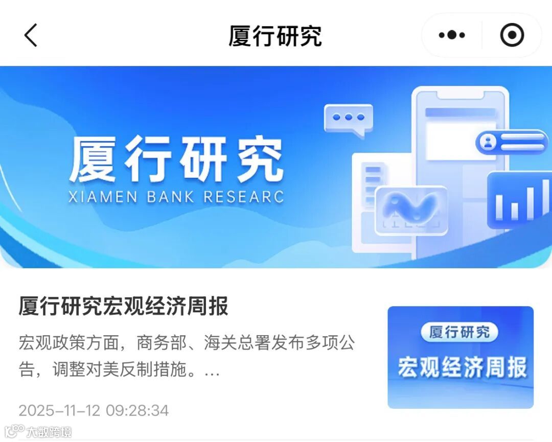 新推出《厦行研究宏观经济周报》,为您解读市场趋势,提供专业金融资讯,洞察先机,赢在起点,一周不看浑身难受。