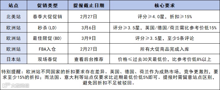 2026年亚马逊春季大促陆续启动,多站点时间安排如下: