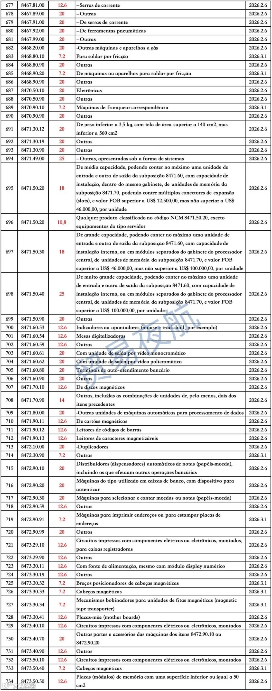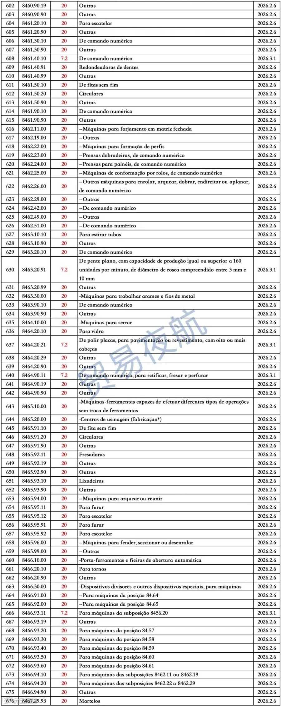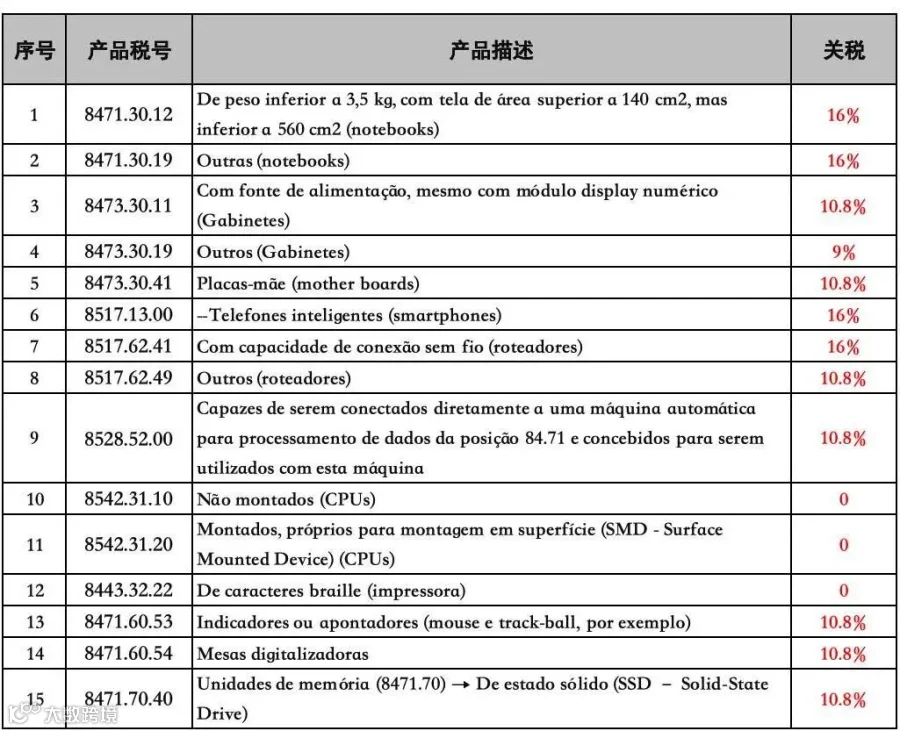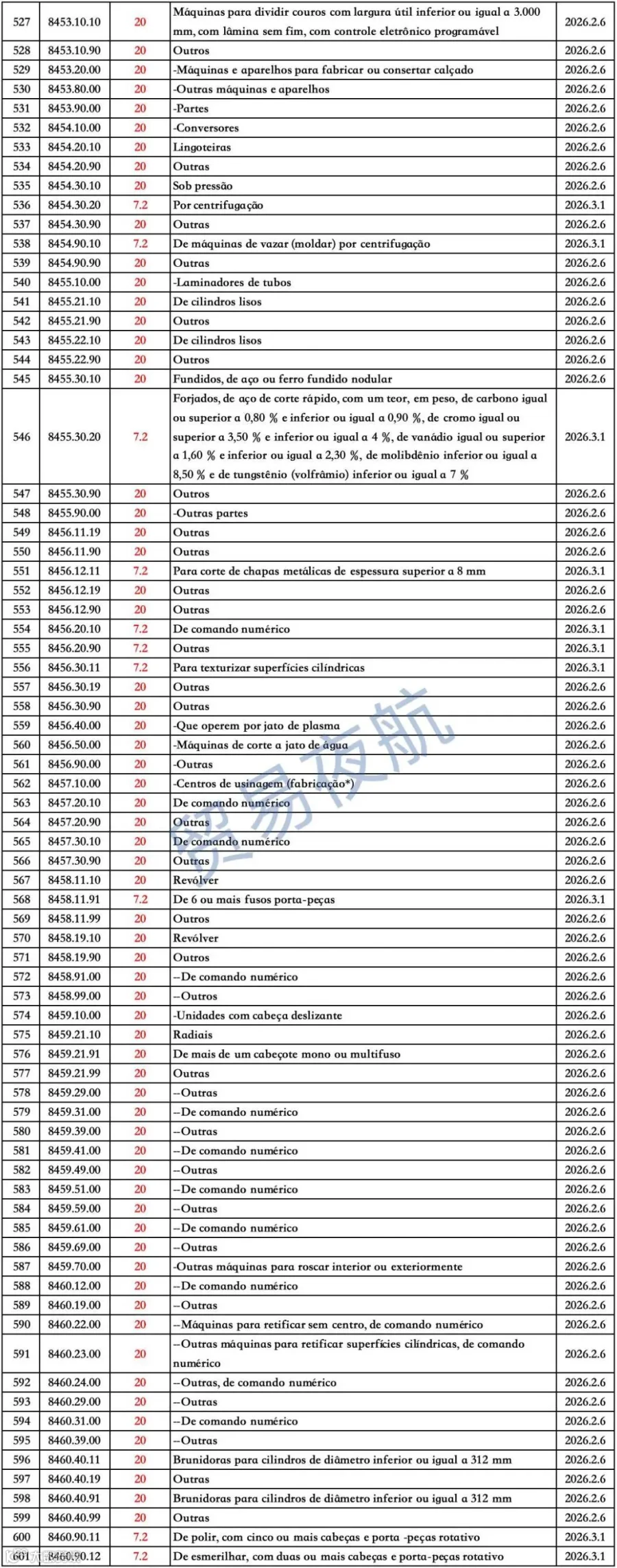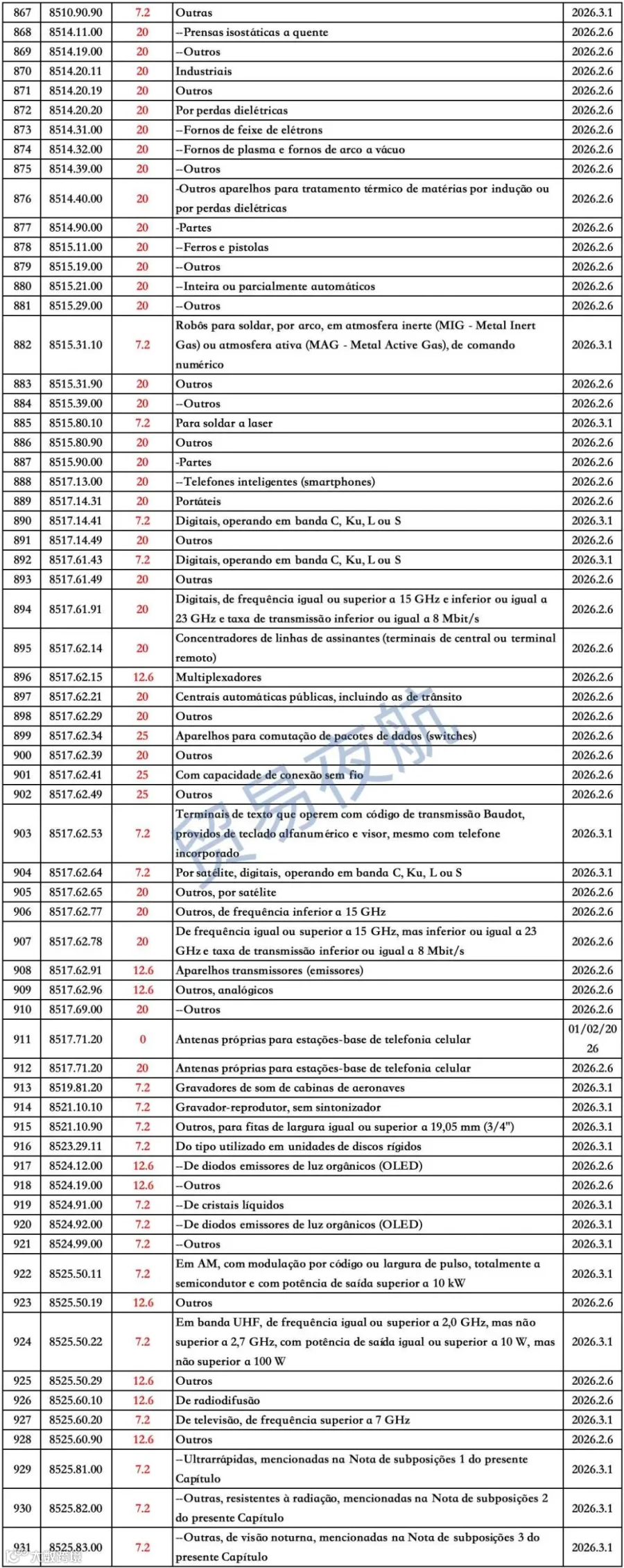 - 豁免安排:对巴西国内无同类产能的工业零部件维持零关税;2026年2月27日,GECEX发布补充决议,对105个产品授予临时零关税豁免,并维持15个产品的原有税率不变。