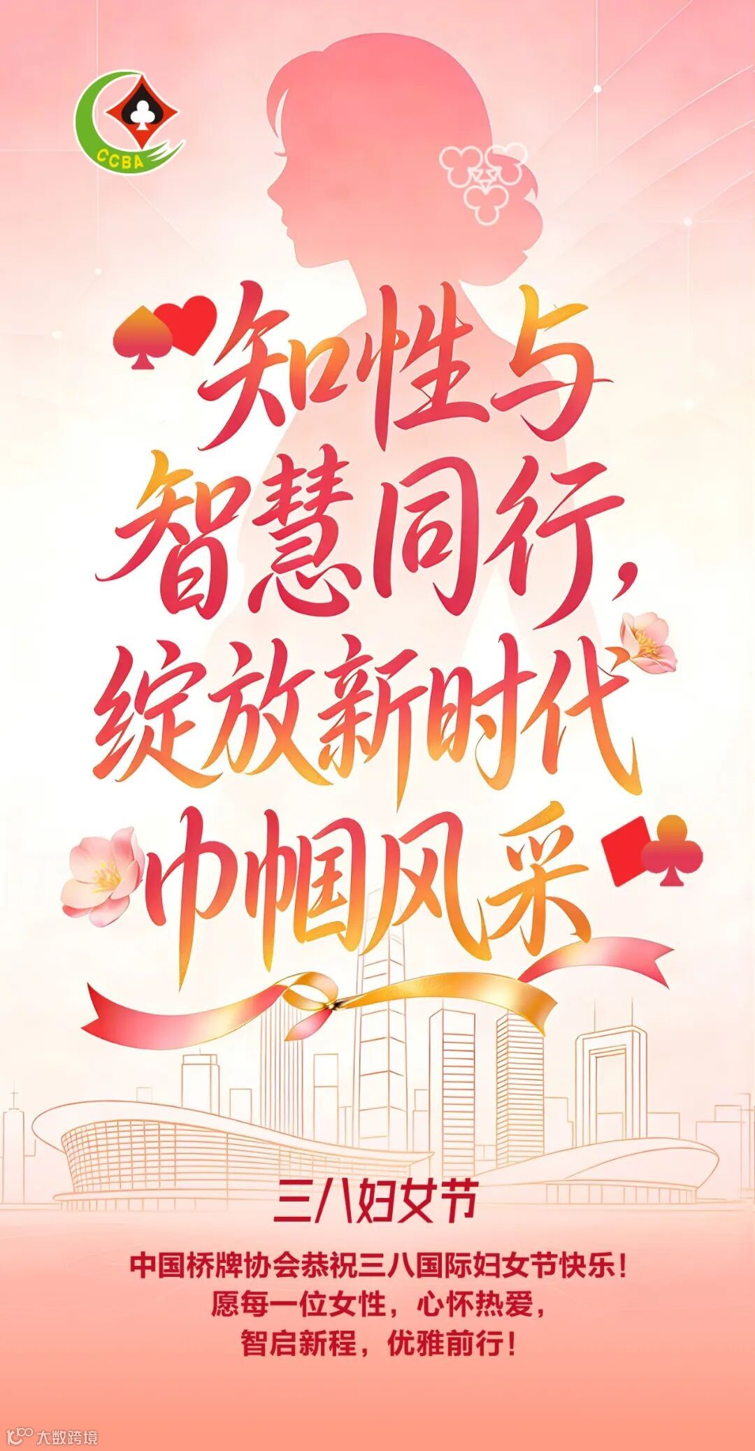 导读:中国桥牌协会恭祝三八国际妇女节快乐!