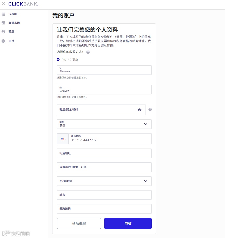 先讲最关键的运营环境,ClickBank 账号申请不难,但需要国外的身份信息,所以对中国大陆地区的 IP、设备指纹有严格的风控,直接用国内网络注册是没办法通过的,最好准备美国身份信息和美国环境,而且要一直稳定下来,如果后续登录频繁切换 IP、换设备,还会直接触发账号异常,封号冻结佣金。