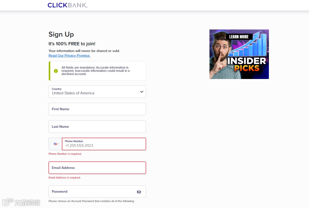 1、ClickBank 账号注册