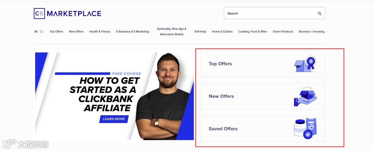 先给大家讲清楚 ClickBank 上的产品分类,平台里的推广 offer 主要分三类:Top offers、New offers、Saved offers,分别对应热门畅销品、新品、优惠产品。