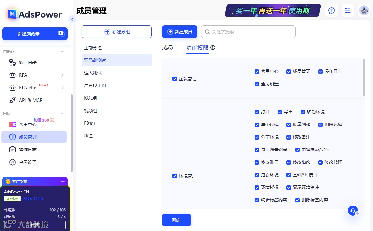 一方面可以靠AdsPower 指纹浏览器做矩阵号批量运营,单账号的流量和收益始终有明显天花板,而把你已经跑通的内容模板、引流方法复制到多个账号上,就能成倍扩大曝光和出单量。AdsPower 能给每个账号创建独立隔离的运营环境,哪怕你同时运营十几个甚至几十个引流账号,也不会出现关联封号的问题,还能支持团队多人协作管理账号,彻底解决多账号运营的环境风控难题,把已经验证成功的盈利模式稳稳放大。