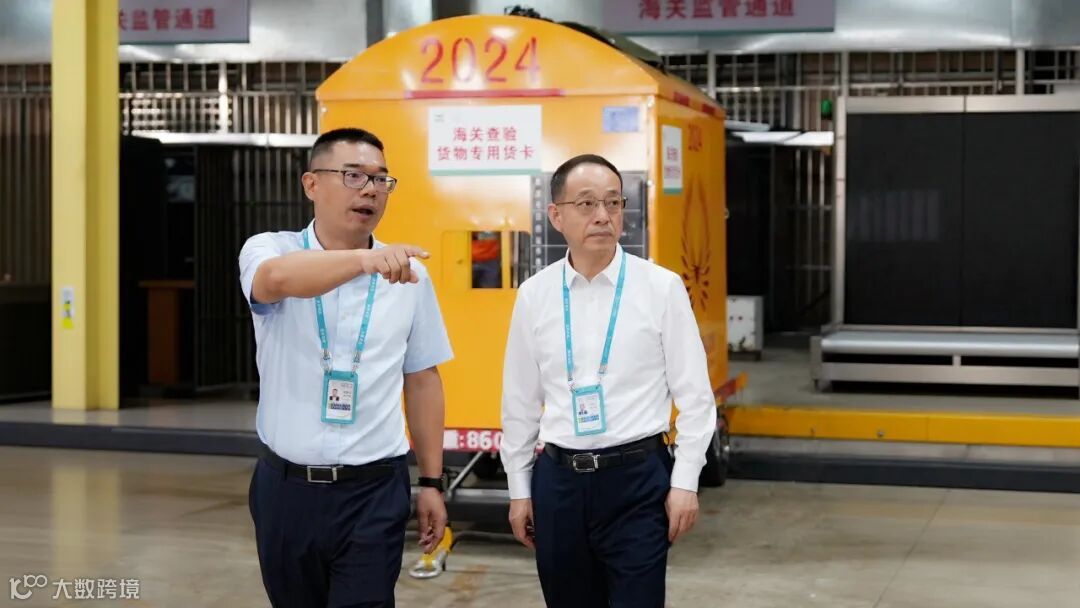 2025年11月12日,李国红(右)调研海口美兰国际机场封关运作项目。