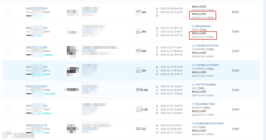 3、亚马逊后台的订单,会显示一个最晚送达时间(见下图);