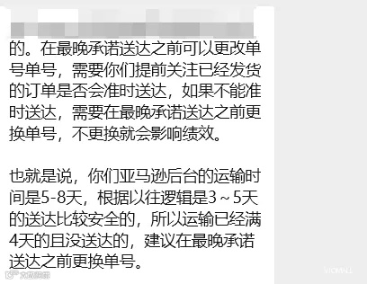 注意⚠️及时更换单号:若预判订单无法在最晚承诺送达日前完成配送,必须在承诺日前更换单号。未更换将直接导致OTDR不达标,影响账户绩效及自发货权限。