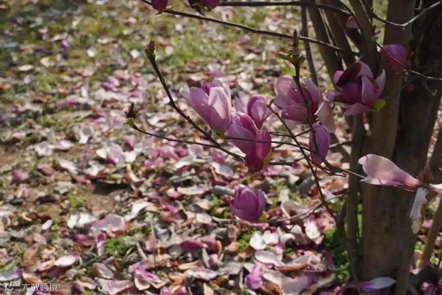 在经历了春节期间的盛放后,五通桥街头巷尾的玉兰花仿佛约好了似的,在微风中集体谢幕。树下仿佛铺上了一层或白或粉的绒毯,与草地相映成趣,呈现出“昨日满树雪,今朝一地霜”的别样景致。