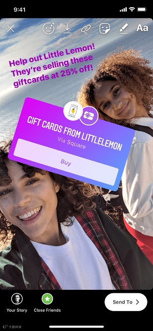 礼物卡Sticker 目的是鼓励用户透过购买礼物卡来支持商户,优点在于礼物卡并不需要立刻使用,可以说是IG 商户让粉丝先付后用,支持其营运的好方法。