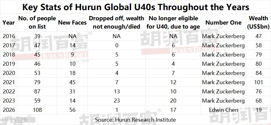 Key Stats of Hurun Global U40s Throughout the Years