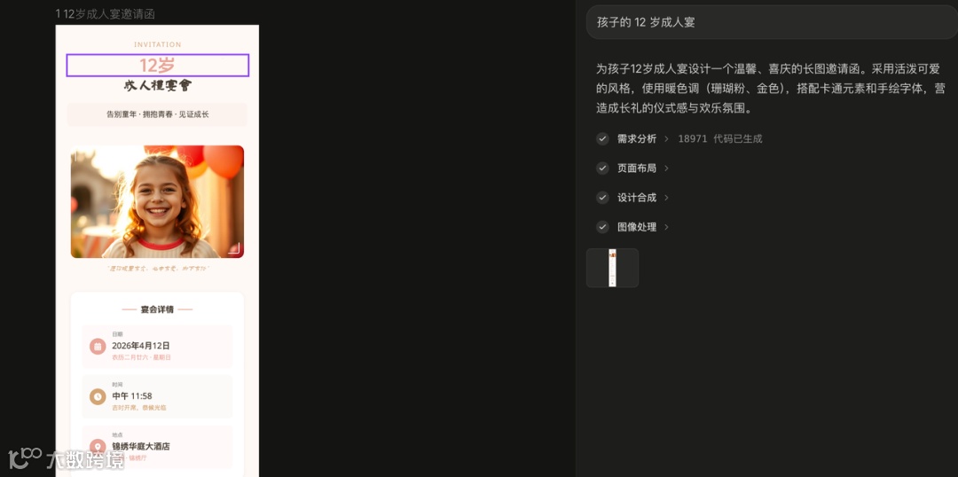 为朋友孩子12岁圆锁宴制作邀请函,无设计经验、不熟悉地域习俗,仅输入基础信息,1分钟生成初稿: