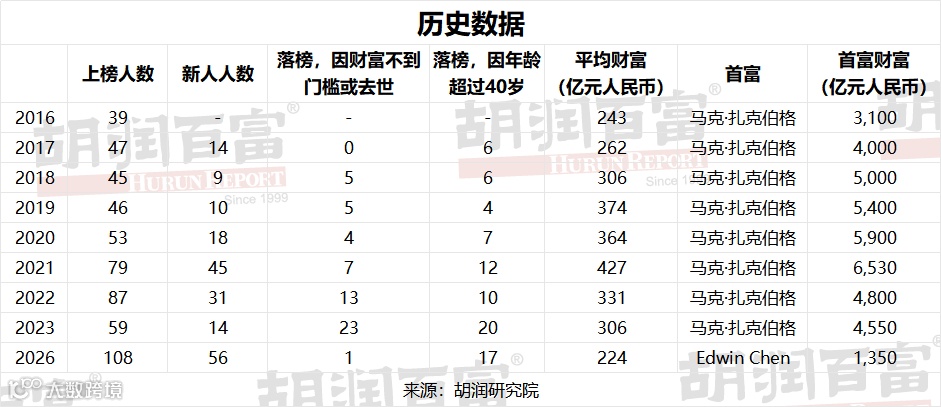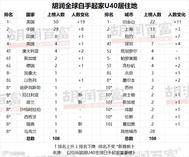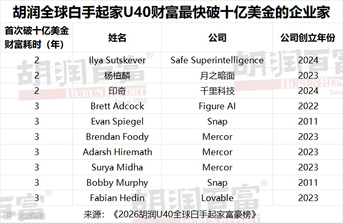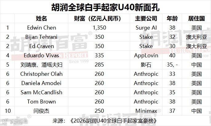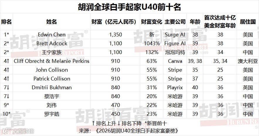 《2026胡润U40全球白手起家富豪榜》