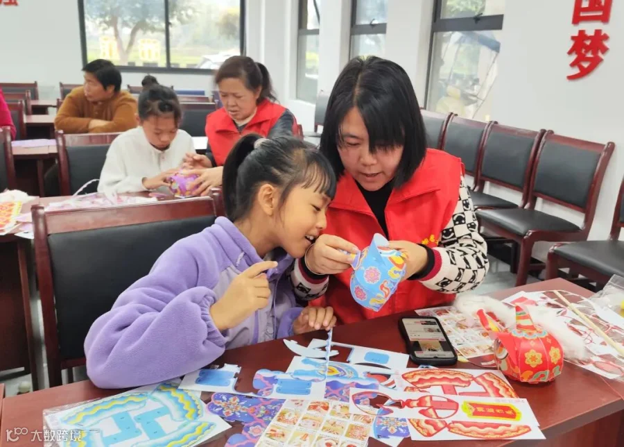 醒狮花灯制作环节将非遗文化传承与爱心陪伴结合。爱心妈妈围在孩子们身边,化身耐心的指导者与温柔的陪伴者,手把手教孩子们拼接灯笼骨架、粘贴醒狮五官,让孩子们在动手实践中领略非遗文化的魅力,在趣味互动中传承中华优秀传统文化。