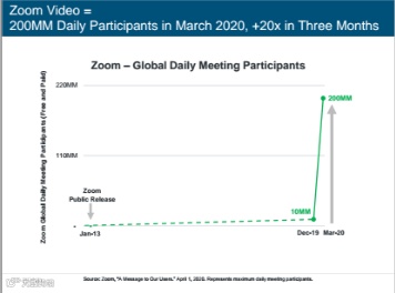Zoom用户增长曲线:3月份日参与数2亿,3个月增长20倍