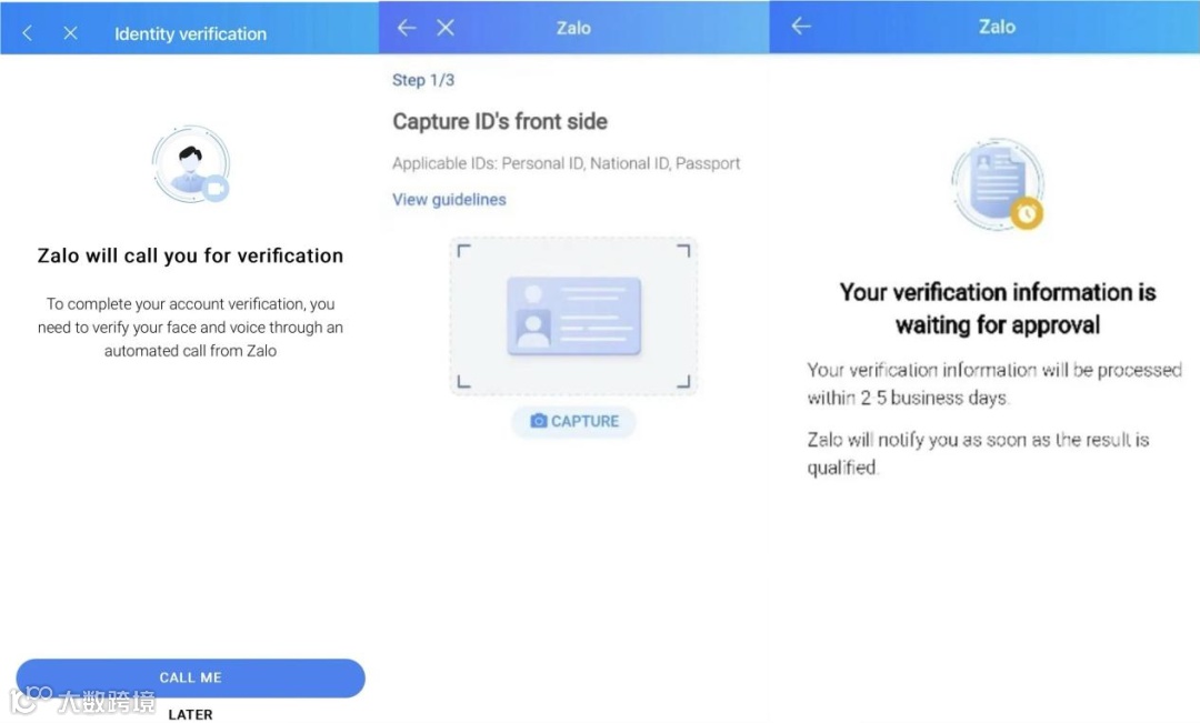 目前Zalo是需要实名认证的,如果没有越南身份证的话,我们可以用护照去实名认证也是可以的。这也是为啥让用越南的号码去认证,你用中国的号码去注册的话,可能没办法通过实名认证,那样就没办法正常使用了。如果没有越南号码可以买一个。实名认证步骤:①在【我的账户】中点击【设置】-【Account and security】进行认证,未认证的账号会显示“Unverified”。②点击【Account verifivation】,上传证件。③点击【Start】认证并点击相机上传自拍照。④点击【Call me】进行视频扫脸。⑤等待人工审核,通过后即可正常使用Zalo。最后还是老规矩,新账号注册了之后先养一养号,不要着急去加人,做营销之类的,然后Zalo也实行“一机一号一IP”的基本政策,所以也不要频繁换ip。好了,关于Zalo的注册就分享到这里,希望对大家有帮助。