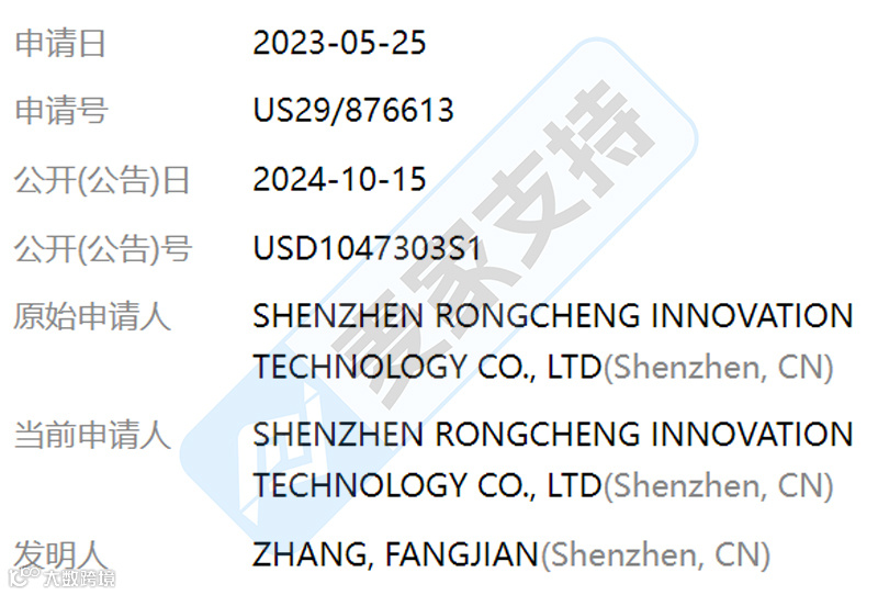 美国外观专利号:USD1047303S1