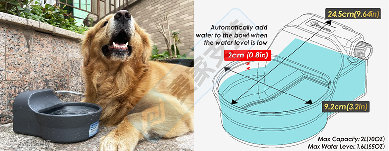 这款自动狗饮水碗分配器在水碗内有一个自动注水阀,无需手动给宠物注水,极大地节省了时间并提供了方便。
