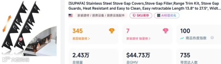 另一款不锈钢“炉灶缝隙盖”通过一条厨房清洁主题短视频实现破圈传播,播放量超1300万,单条视频带动销量超2000件。截至2月底的28天内,累计售出近8000件,销售额达15万美元(约103万元)。