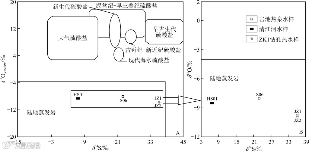 本次共采集26组水样,涵盖地下热水(温泉、钻孔)、冷泉及河水,用于水质、氢氧、碳、硫同位素分析。采样点见图1。水质分析在湖北省地质局第二地质大队实验室完成,采用GGX-600原子吸收分光光度计,误差<2.5%。同位素测试由中国地质大学(武汉)及国土资源部相关实验室完成,使用L2130i光腔衰荡光谱仪、MAT253质谱仪等设备,检测误差均小于1‰。