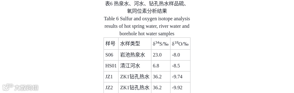 热泉水δ³⁴S为23.0‰,钻孔热水达36.2‰,显著高于河水(6.8‰),与SO₄²⁻浓度变化一致。δ³⁴S在封闭环境中易富集,反映从盆地边缘至中心水环境趋于封闭,水–岩反应增强,硫酸盐还原作用明显。