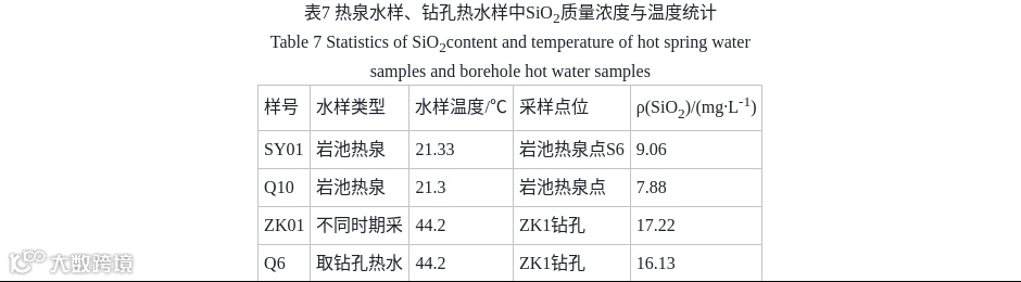 二氧化硅温标估算温度为31.98~58.24℃,偏高26%~70%,考虑地表降温影响,该范围可近似反映热储实际温度。