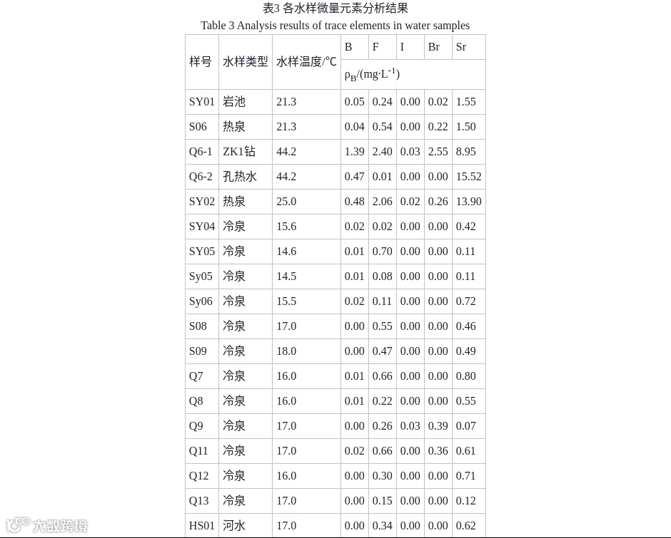 2.2.3 地下热水微量元素特征