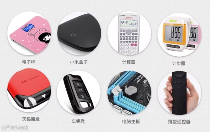 指由内置或可更换式纽扣电池、硬币电池供电的消费品,包括配备备用电池的产品(无论电池是否可更换、内置或单独销售)。典型示例包括:遥控器、钟表、电脑、照相机、计算器、手电筒、电子蜡烛、健身器材、数字厨房秤与浴室秤、遥控钥匙替换壳、音乐贺卡、家用医疗器械等。