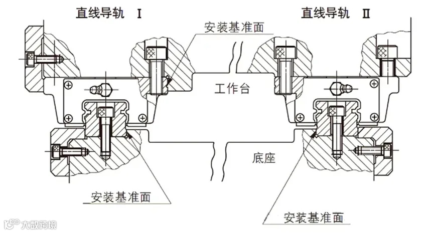 对运动精度和刚性要求较高的场合,建议设置两个底座安装基准面和一个工作台基准面。