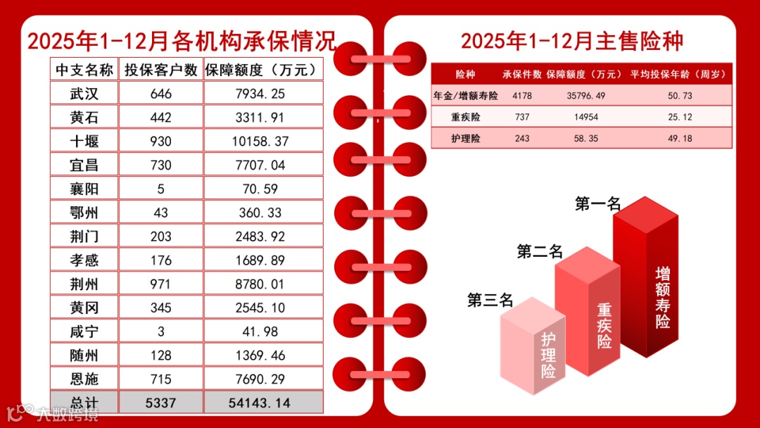 2025年1-12月,湖北合众共为5337名客户提供累计5.41亿的保险保障。为737名客户提供大病医疗保障平均承保保额20.29万元;为243名客户提供长期护理保障,为客户老年生活提供护理保障支持。