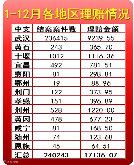 2025年1-12月份,合众人寿湖北分公司理赔240243件,赔付金额17136.07万元。