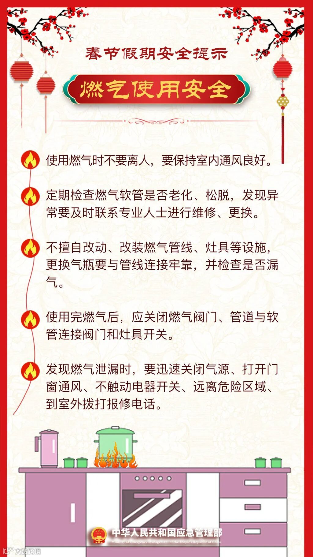 导读:春节假期将至家庭用火用气用电增加自驾出行、客货运输增多灯会、庙会、促销庆典等大型活动多宾馆、饭店、市场、商超等