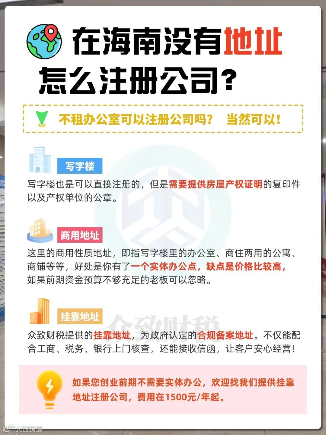 找靠谱的海南本地代办公司,提供经工商局备案的合法挂靠地址,还负责文书送达、信息联络等服务,成本低、合规性强。