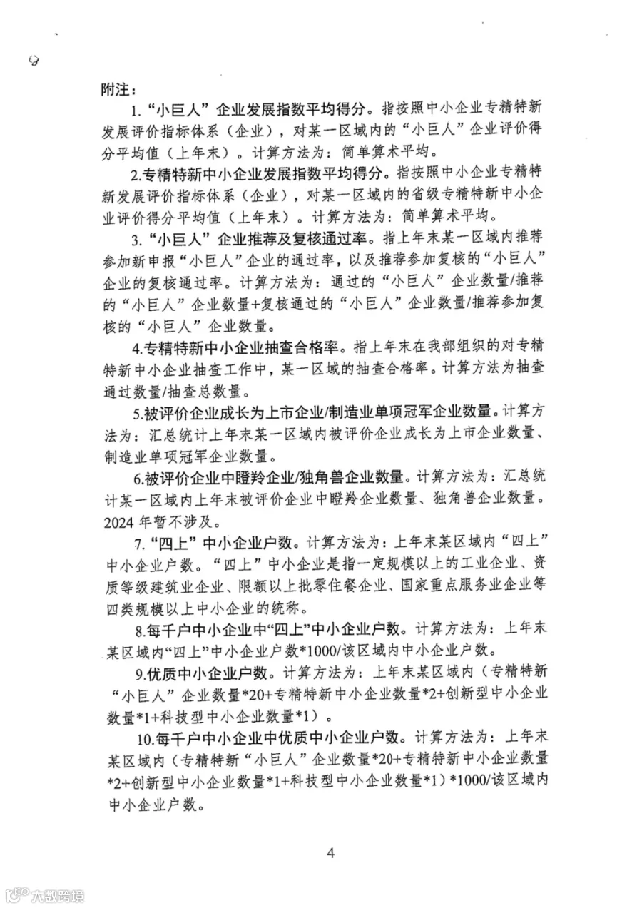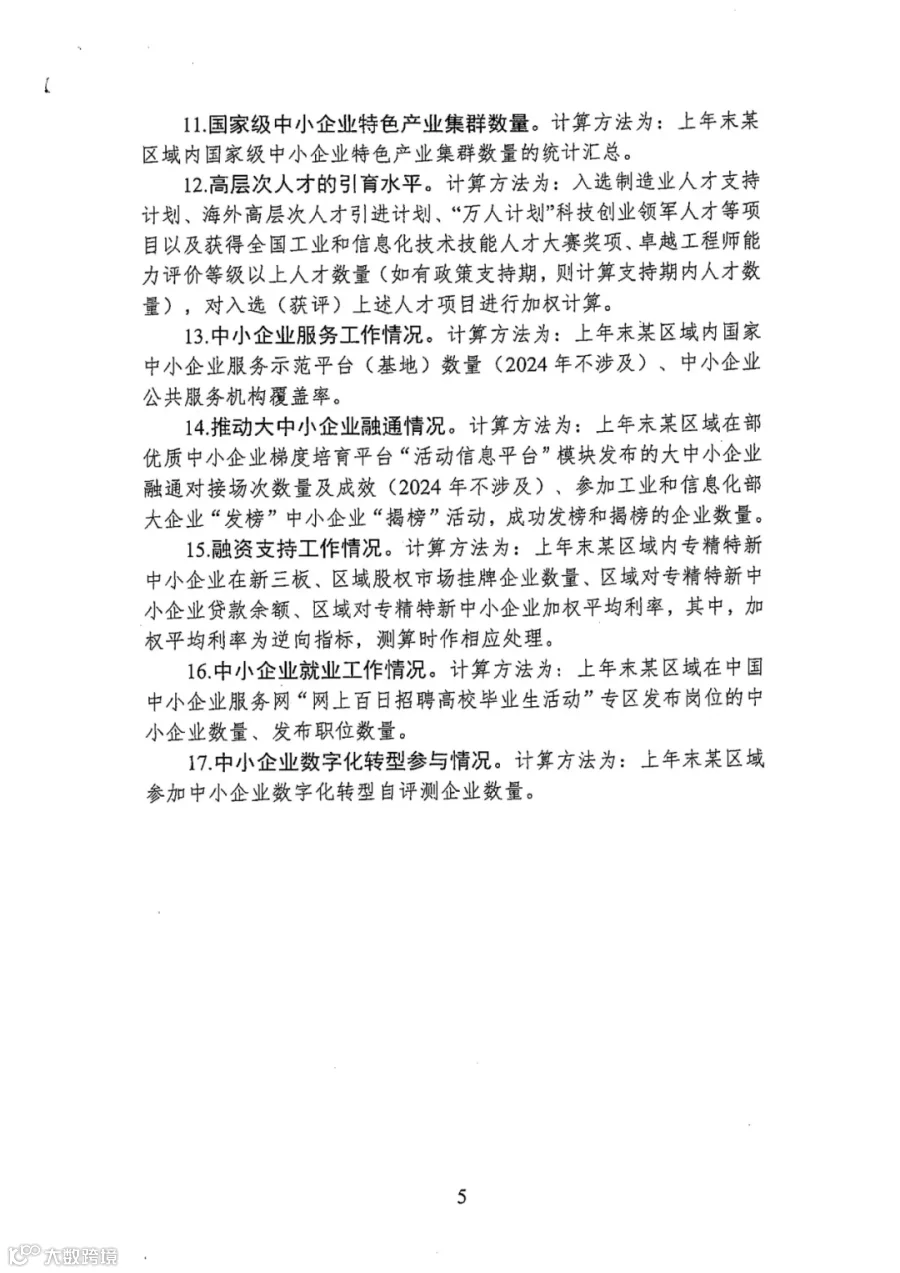计算方法为:上年末某区域内(专精特新“小巨人”企业数量*20+专精特新中小企业数量*2+创新型中小企业数量*1+科技型中小企业数量*1)。
