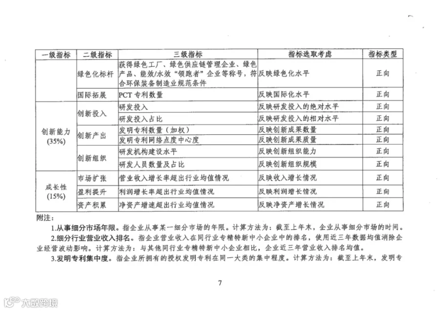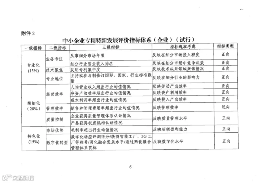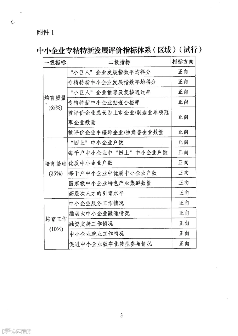 中小企业专精特新发展评价指标体系(区域)(试行)