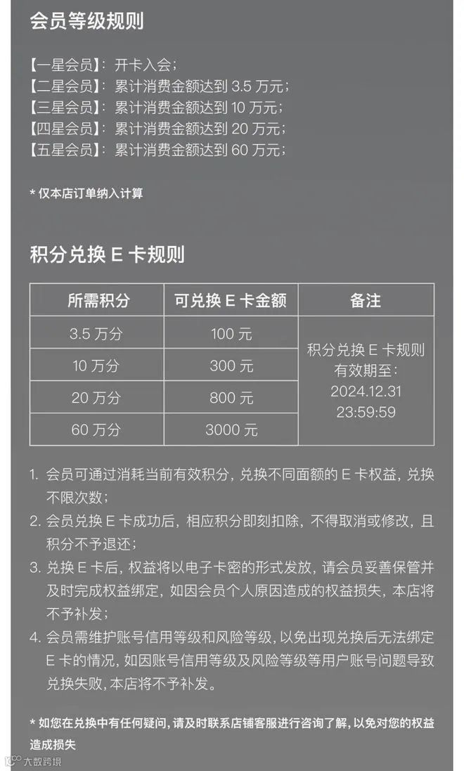 - 五星:60万积分(相当于消费满60万元)