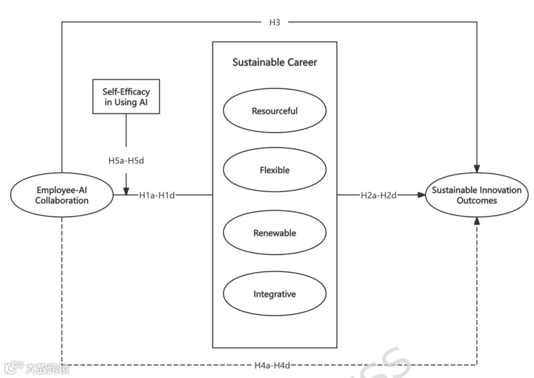 这篇文章探讨了员工与人工智能(AI)协作(EAC)如何通过可持续职业能力(SC)推动可持续创新成果(SIO),并研究了自我效能感在AI使用(SEUA)中的调节作用。