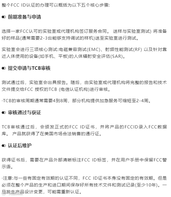 • 模块化认证:若产品采用已获FCC ID认证的无线模块(如主流蓝牙/Wi-Fi芯片),可豁免整机射频测试,显著缩短周期、降低成本。