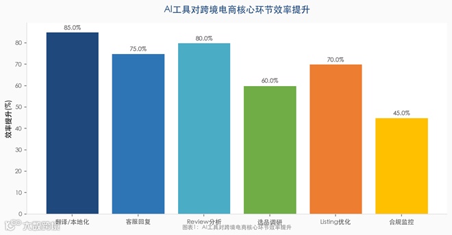 图表1:AI工具对跨境电商核心环节效率提升