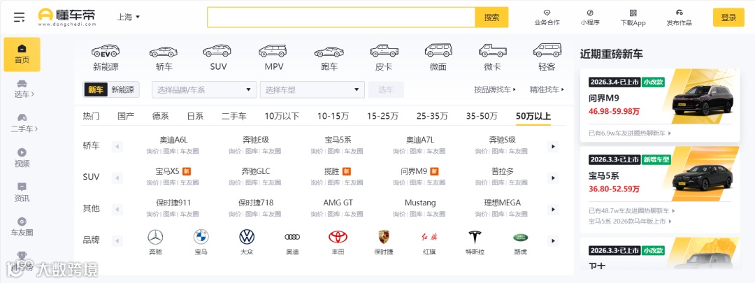 截至2025年8月,懂车帝移动端日活跃用户突破1000万,覆盖汽车兴趣用户超过5亿,内容创作者规模约750万,日均浏览量超过56亿次。在商户规模上,懂车帝合作的汽车经销商超过3万家,覆盖汽车品牌超过110个。