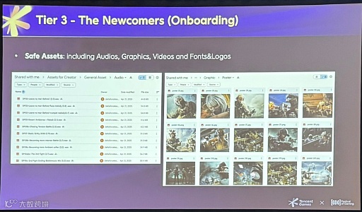 “安全资产”示例。 版权明确的音乐曲目、图形材料、海报等会被分享到文件夹中,营造了一个新创作者可以安心参与内容创作的环境。