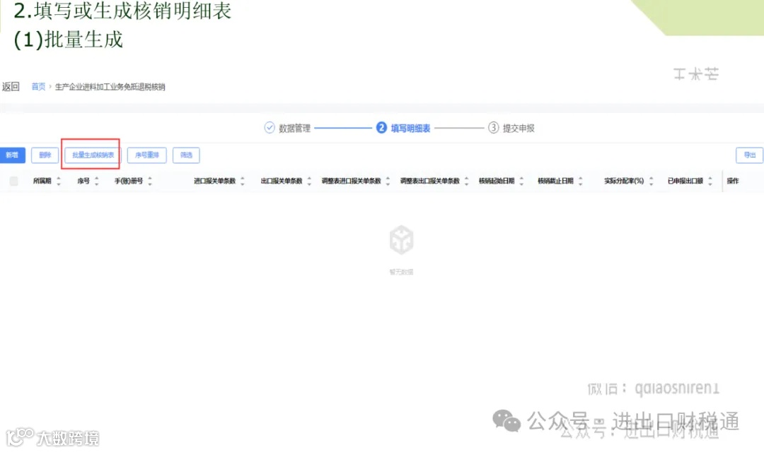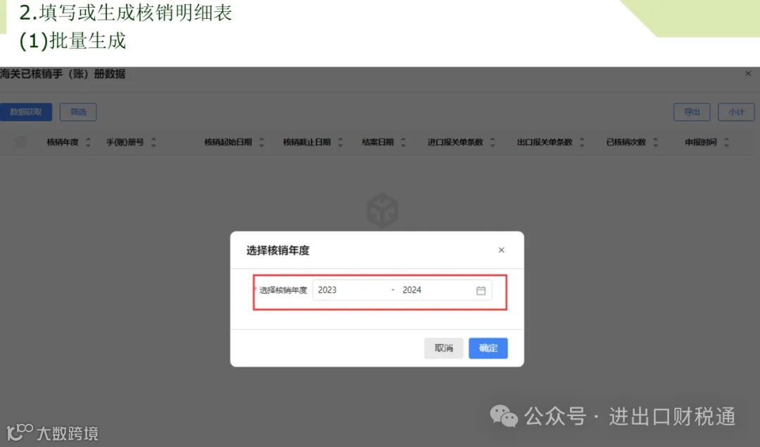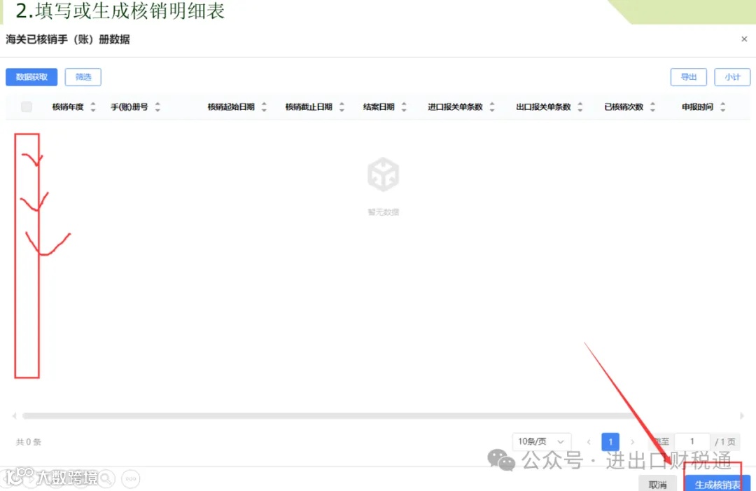 下载加贸数据,勾选需要核销的手账册生成核销表