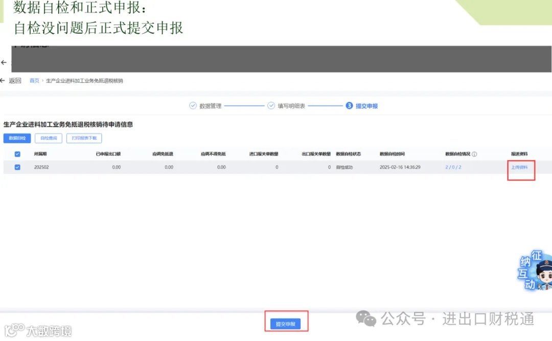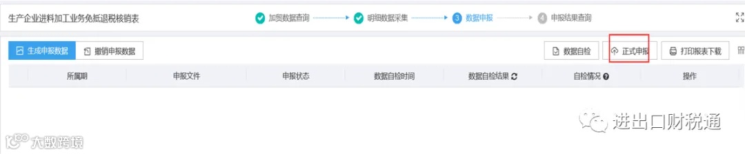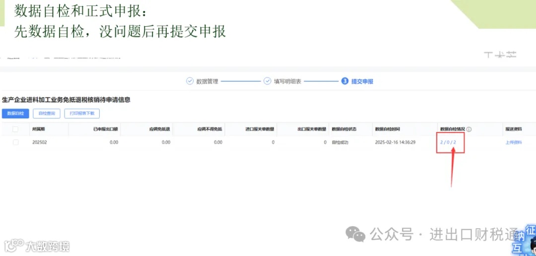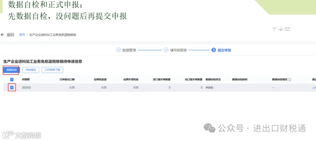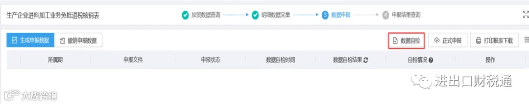 3.生成核销数据做数据自检,根据提示的疑点进行调整直至无疑点,或虽有疑点但可挑过,进行正式申报