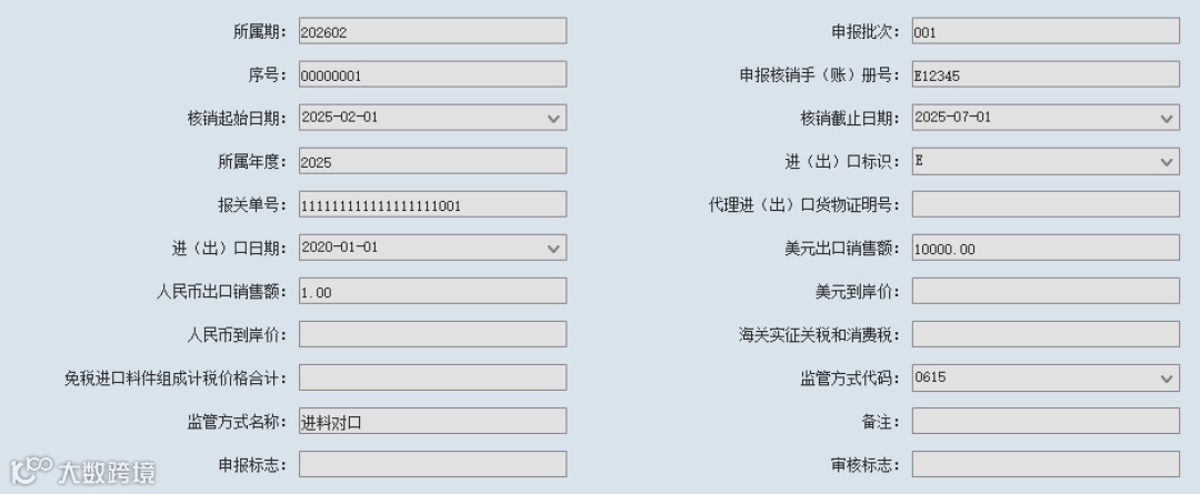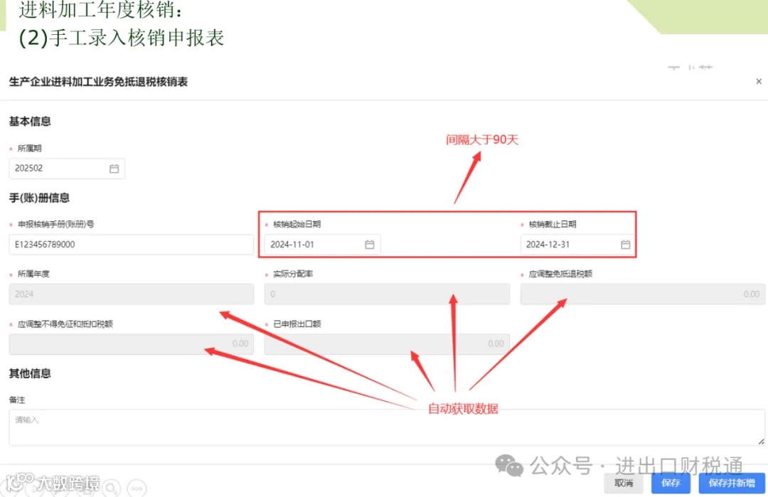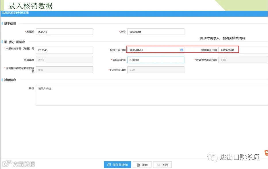 核销起始和截止日期:根据海关的核销周期录入,间隔应大于90天。如果小于90天的,应合并日期录入